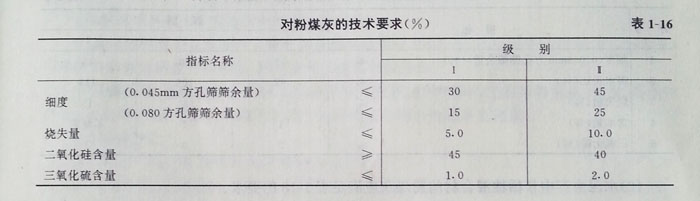 三,對用于水泥和混凝土中的粉煤灰的技術要求: