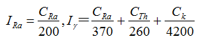 式中 CRa、CTh、CK——建筑材料產品中,226Ra、232Th、40K的放射性比活度,Bq?kg-1;